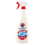 - Se pulverizeaza produsul direct pe suprafata care trebuie curatata, dupa care se sterge cu un burete ud sau cu o laveta umeda. Pentru murdarie incapatanata, lasati sa actioneze cateva secunde. Pentru tesaturi, pulverizati pe zona de tratat si spalati ca de obicei. Activitatea dezinfectanta se obtine in 10 minute de contact.